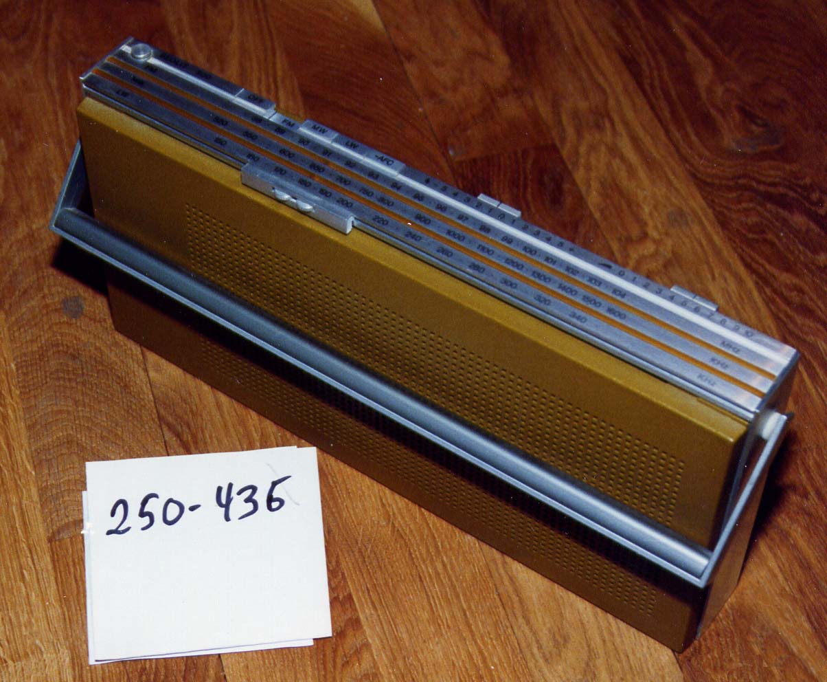 Uddybende oplysninger: Beolit 600 fremstillet af Bang & Olufsen omkring 1970. Radioer af denne type har i mange år været en fast bestanddel i utallige danske hjem. Plastik, der ligesom transistorer er vigtigt efterkrigsprodukt, er benyttet i stort omfang i denne radio.