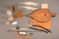Beskrivelse: En kasse (28,5 x 56 x 14 cm) med låg. Ruminddeling til nedenstående: - en blæsebælg af træ og læder. Luftindtaget er et udskåret hjerte. Messingstuds. 45 cm lang. - to grove børster, 15 cm lange. - 4 pennefjer. - 1 medicinske af porcelæn. Selve ske-hulningen er 9 cm. Skaftet er brækket af. - 4 flasker af klart glas, fra Grenå Apothek. 3 af dem er firkantede og 11 cm høje, 1 er rund og 9 cm høj. - 1 rund, groft udskåret træpind, 21 cm lang, 3,2 cm i diameter. - 2 slanger, der passer til bælgen, lavet af sort snoromvunden læder. Messingmuffe i den ene ende, elfenbensstuds i den anden. Slangerne er hver 30 cm lange. I den ene er der en lille, tyk studs, i den anden en lang tynd (6 cm). - 1 lille elfenbenssprøjte på 26 cm incl. studs. 2,5 cm i diameter. Træhåndtag. Studsen er af messing og med rifling udvendig. - En studs af elfenben og sort-brunt træ. Passer ikke til hverken sprøjte eller blæsebælg. Stophane. - Et elfenbensrør på 11,5 cm. Passer ikke til nogle af de øvrige effekter. - En 50 cm lang, tynd stang med en svamp i hver ende. Er sandsynligvis en detrusor til fjernelse af fremmedlegemer i spiserøret. Desuden ligger der i kassen en mindre seddel, hvorpå der står: "Livredningsmateriale fra (...)ring Aaret 1825, der svarer til vor nutids Pullmo(...)r", ukendt oprindelse.