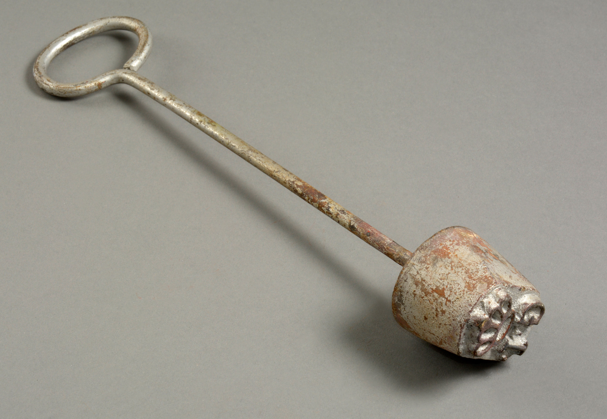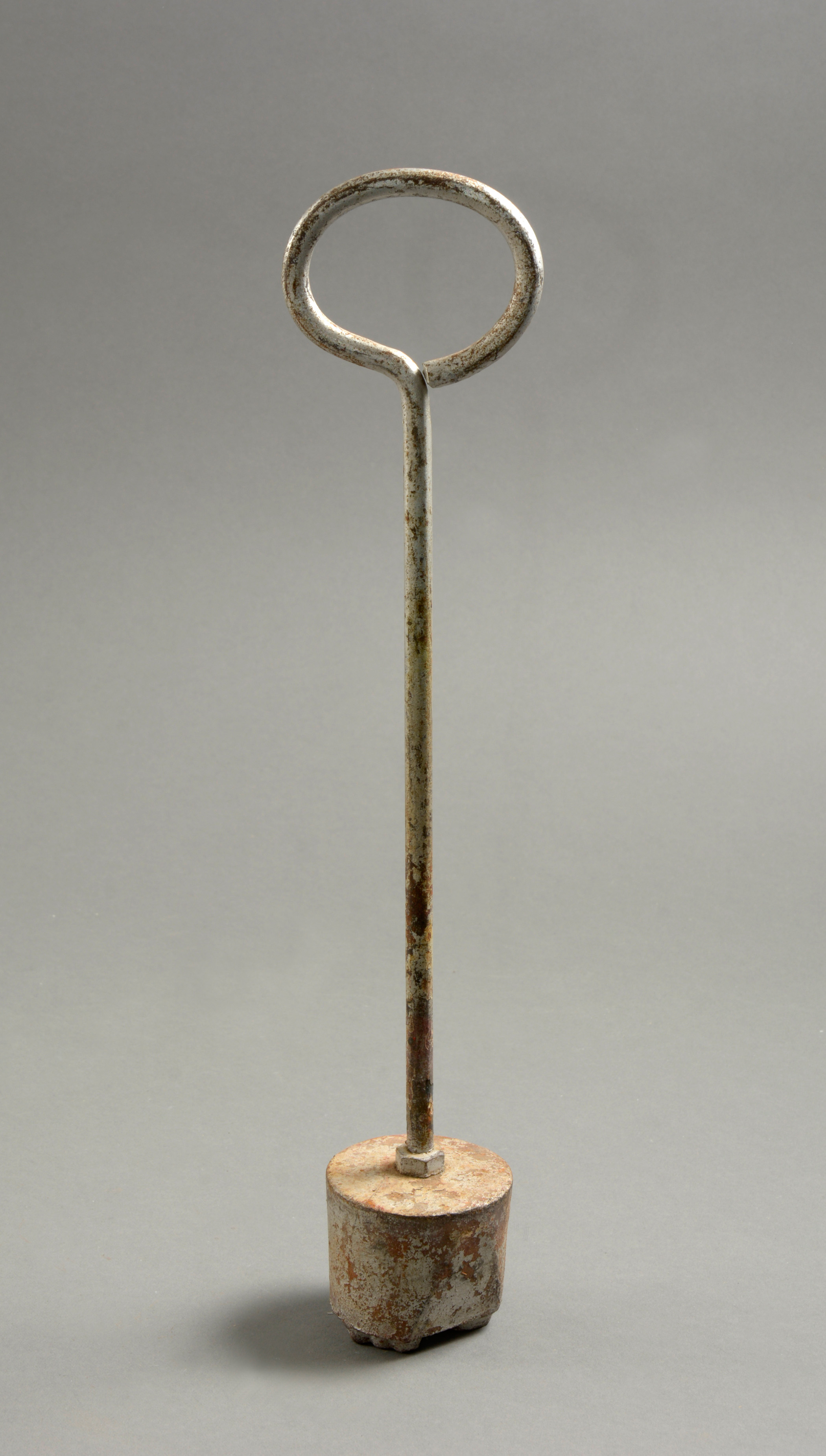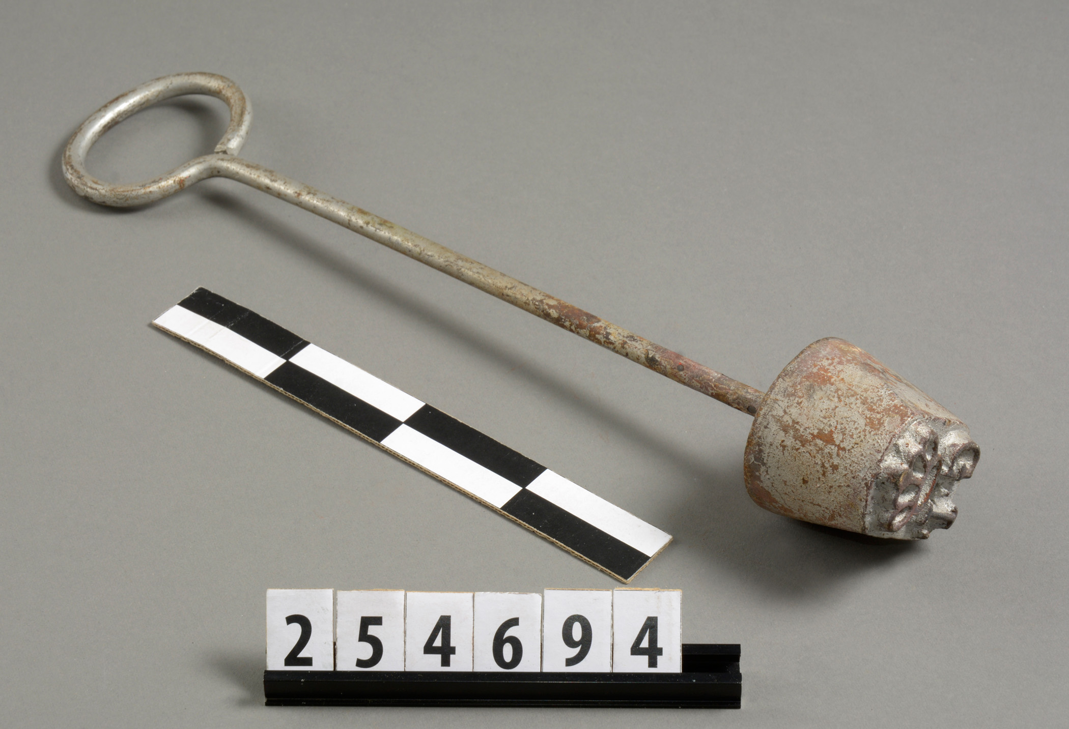 Uddybende oplysninger: Brændejern som dette har været brugt til at brændemærke kvadratiske afmærkningsstokke (L: ca. 120 cm) til anbringelse ved opmålingspunkter i forbindelse med geodætisk arbejde.